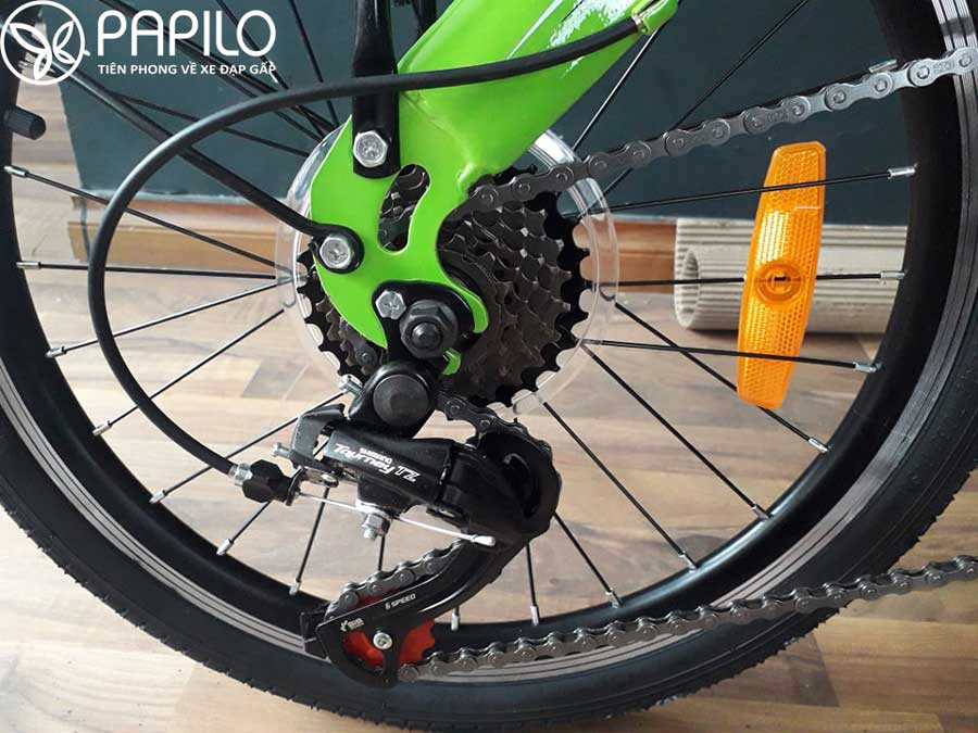 – Được trang bị bộ đề 7 tốc độ Shimano Revoshift, kết hợp với củ đề Shimano Tourey giúp xe đi nhanh hơn và đạt tốc độ tối đa với kích thước bánh 20 inch.