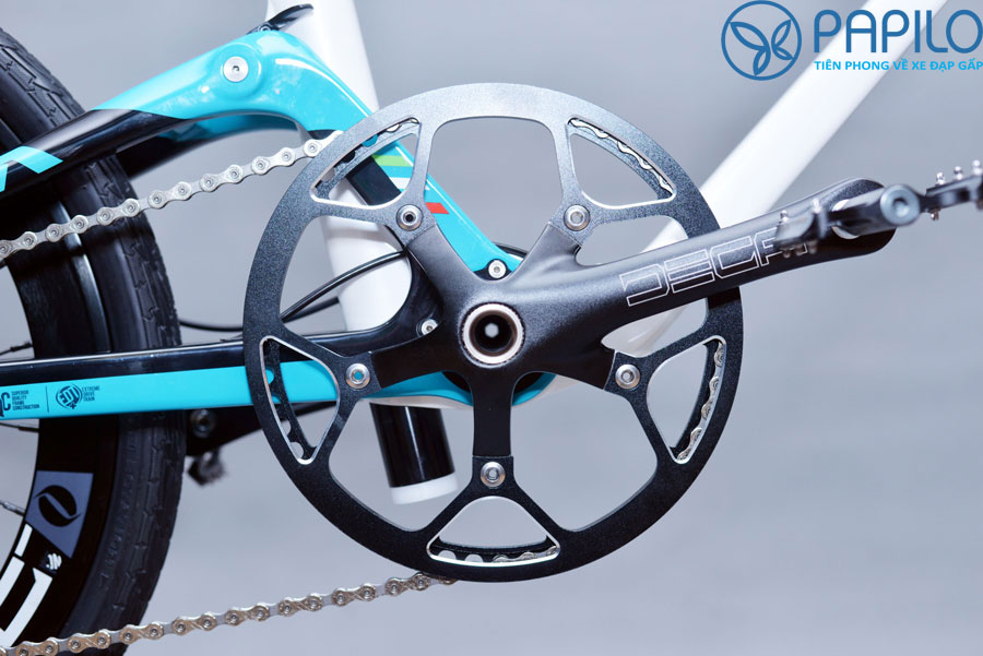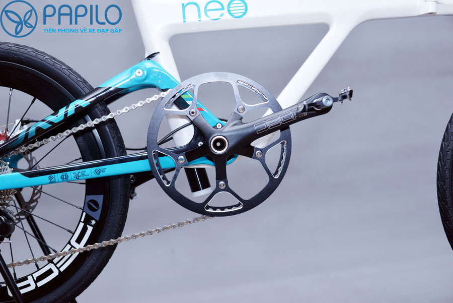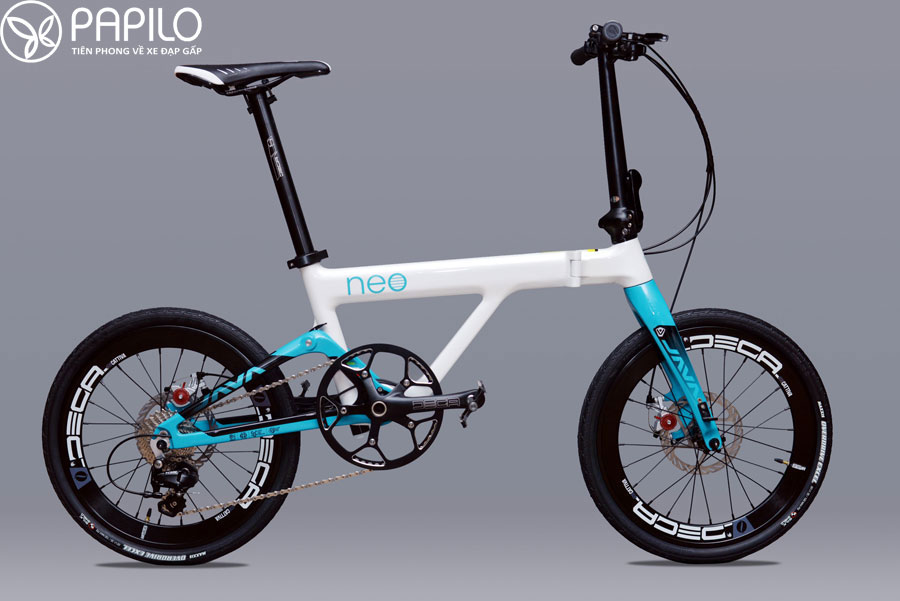– Xe đạp gấp Java Neo được trang bị bộ đề Shimano 105 cao cấp nhất của Nhật Bản, kết hợp với bộ đùi đĩa siêu khủng 53T giúp xe đạp êm, lướt nhanh, nhẹ. Hệ thống đĩa, xích, líp CNC, được làm từ hợp kim nhôm sáng bóng, bền, nhẹ, thương hiệu DECA – Italia