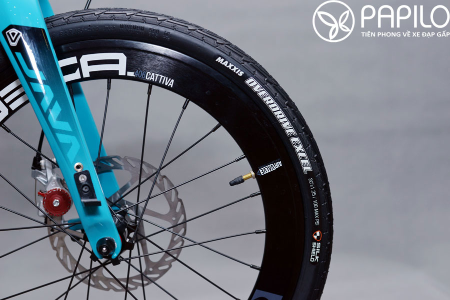 – Bánh xe 20 inch, Lốp xe Maxxis (thường xuất hiện ở ô tô), lốp lụa đàn hồi và chịu lực tốt lên đến 100psi