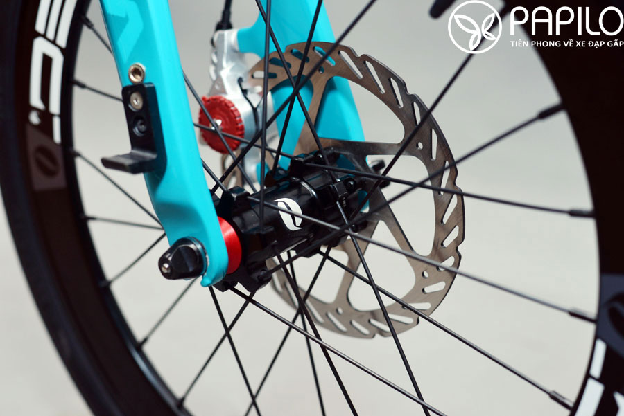 – Xe đạp gấp mà không phải là gấp. Thiết kế chốt gấp, bản lề được chau chuốt. Chốt gấp cổ xe khớp với chốt an toàn, được làm từ hợp kim nhôm tĩnh điện, giúp cho việc gấp xe trở nên dễ dàng, an toàn. Chốt gấp ở khung xe có bản lề được giấu vào khung.